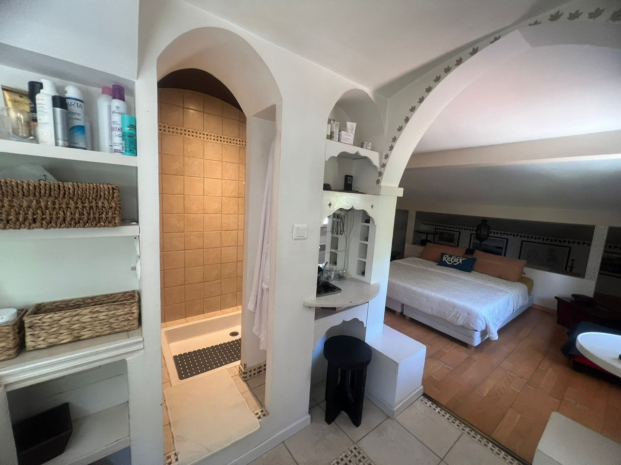 À l’étage, un bel espace nuit privatisé vous attend avec :