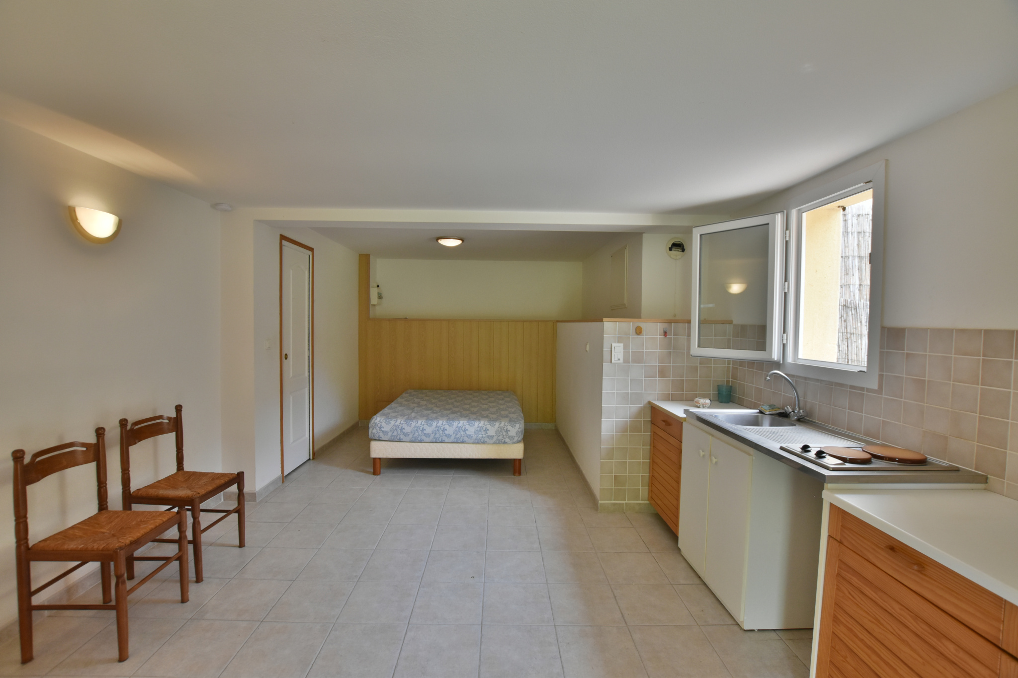 - Un studio de 24m2 composé d'une pièce de vie, une salle d'eau avec WC et une terrasse privative de 20m2.