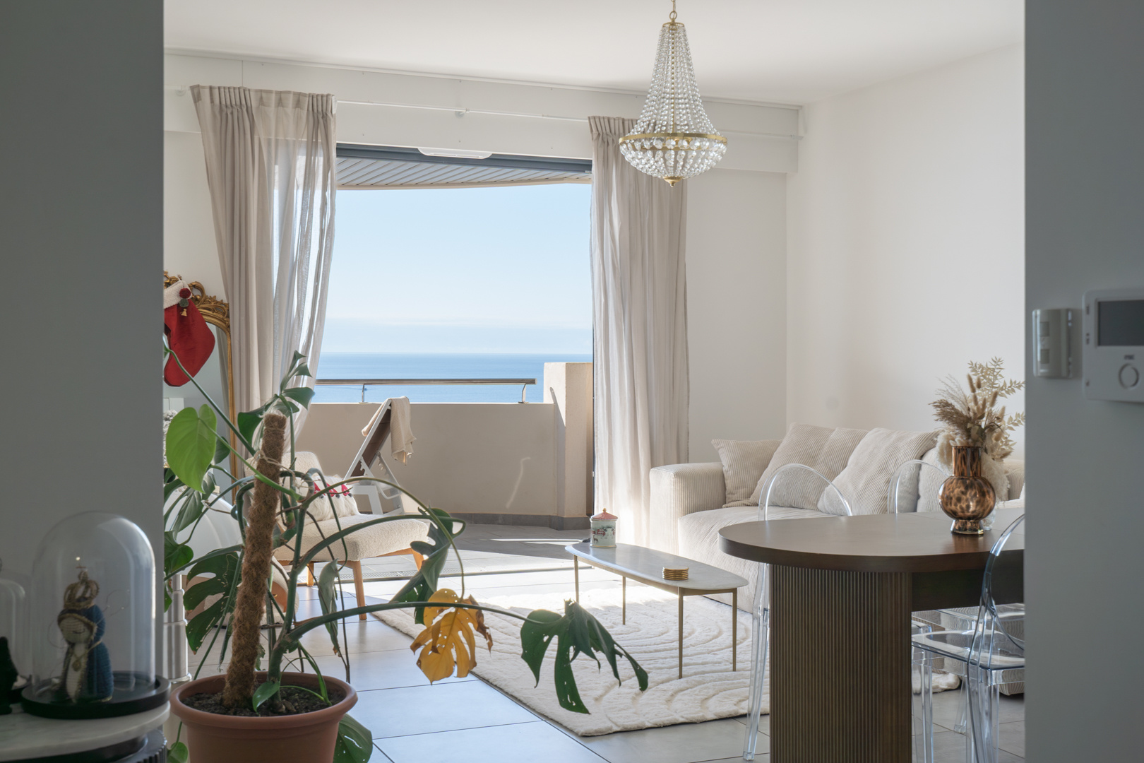 Au 5ème et dernier étage, l'appartement est composé d'une entrée avec un placard mural, une cuisine équipée ouverte sur le séjour, une chambre avec un placard mural, une salle de bains avec toilette, et une grande terrasse accessible depuis le séjour et la chambre offrant une magnifique vue à 180o sur la mer.