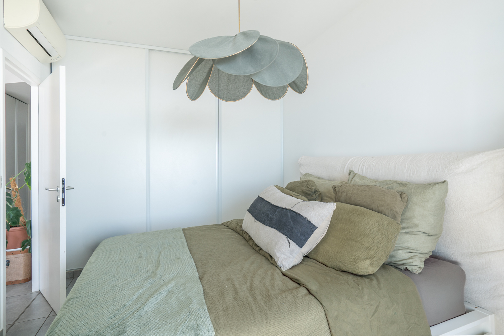 Prestations de standing (Carrelage au sol, climatisation dans le séjour et la chambre, baies vitrée en galandage, volets roulants électriques, placards équipée, toilettes suspendus....), parking.