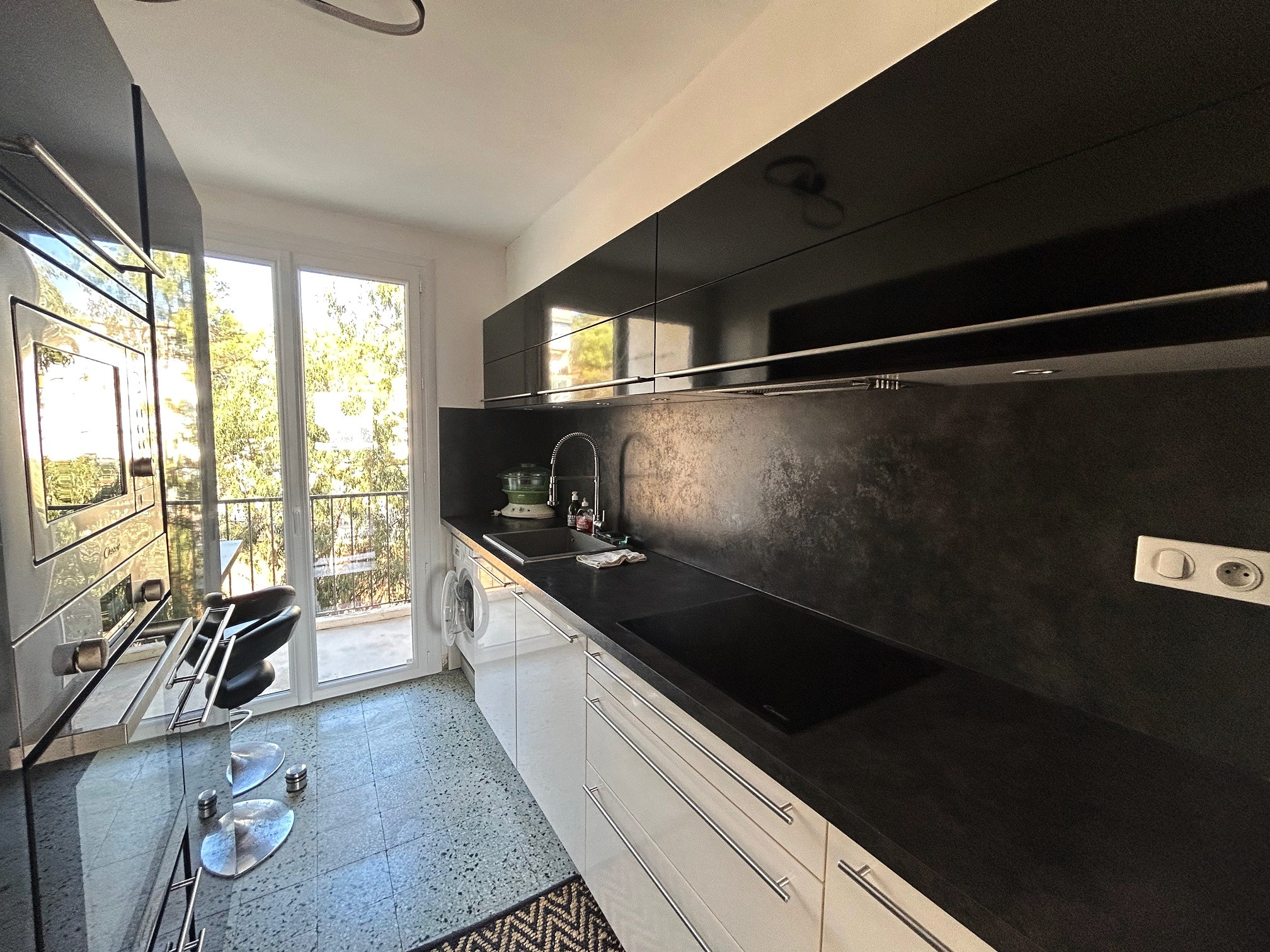 D''une superficie de 53m2,le bien dispose d'un séjour avec terrasse offrant une vue mer imprenable et d'une cuisine moderne intégralement équipée donnant sur une loggia.